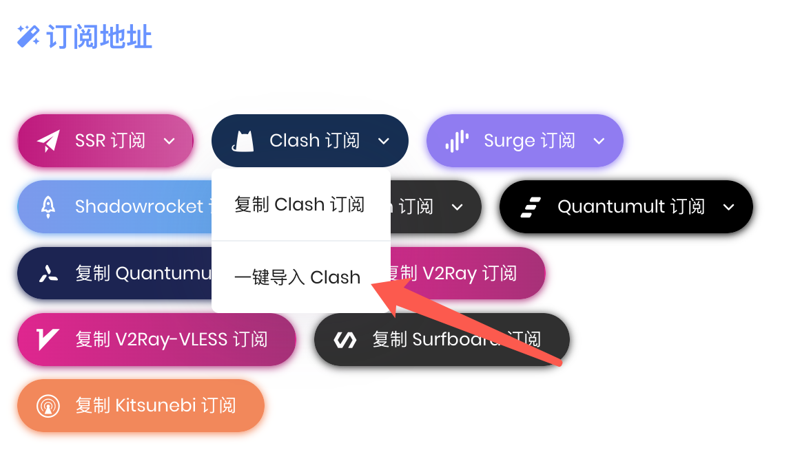 2️⃣ 若导入后,订阅地址无法更新,可选“复制Clash订阅”,用蜂窝数据下载yaml配置文件,导入Clash